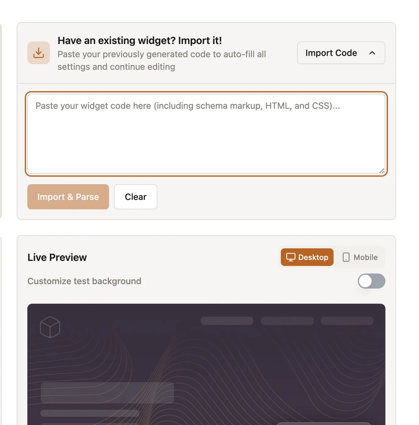 Updates & Maintenance: The Code Import feature enables you to refresh your widget with our latest updates, ensuring continued compatibility and access to new features. We may periodically notify you via email about significant updates that enhance functionality or address compatibility changes – we recommend applying these updates to maintain optimal performance.